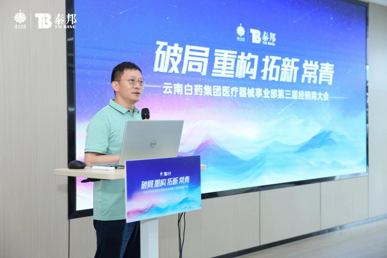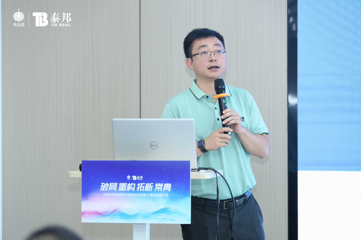 会议上,合肥公司总经理朱家龙就本次会议主题—“破局 重构 拓新 常青”作了主旨演讲,就习总书记在第二十届三中全会《决定》中所强调的“健全支持创新药和医疗器械发展机制、完善中医药传承创新发展机制、强化基层医疗卫生服务”等方针政策,向与会来宾作了分享,并从当前医药市场环境、连锁业务态势、优质产品及慢病疼痛机遇等方面进行了系统性分析,针对渠道端的多样化发展,合肥公司及经销商要立足现有基础,打开传统思维闭环,创新销售模式,思考长期可持续发展的业务,找准市场痛点、产品卖点,做优产品与服务,筑牢业务长期发展的基石。